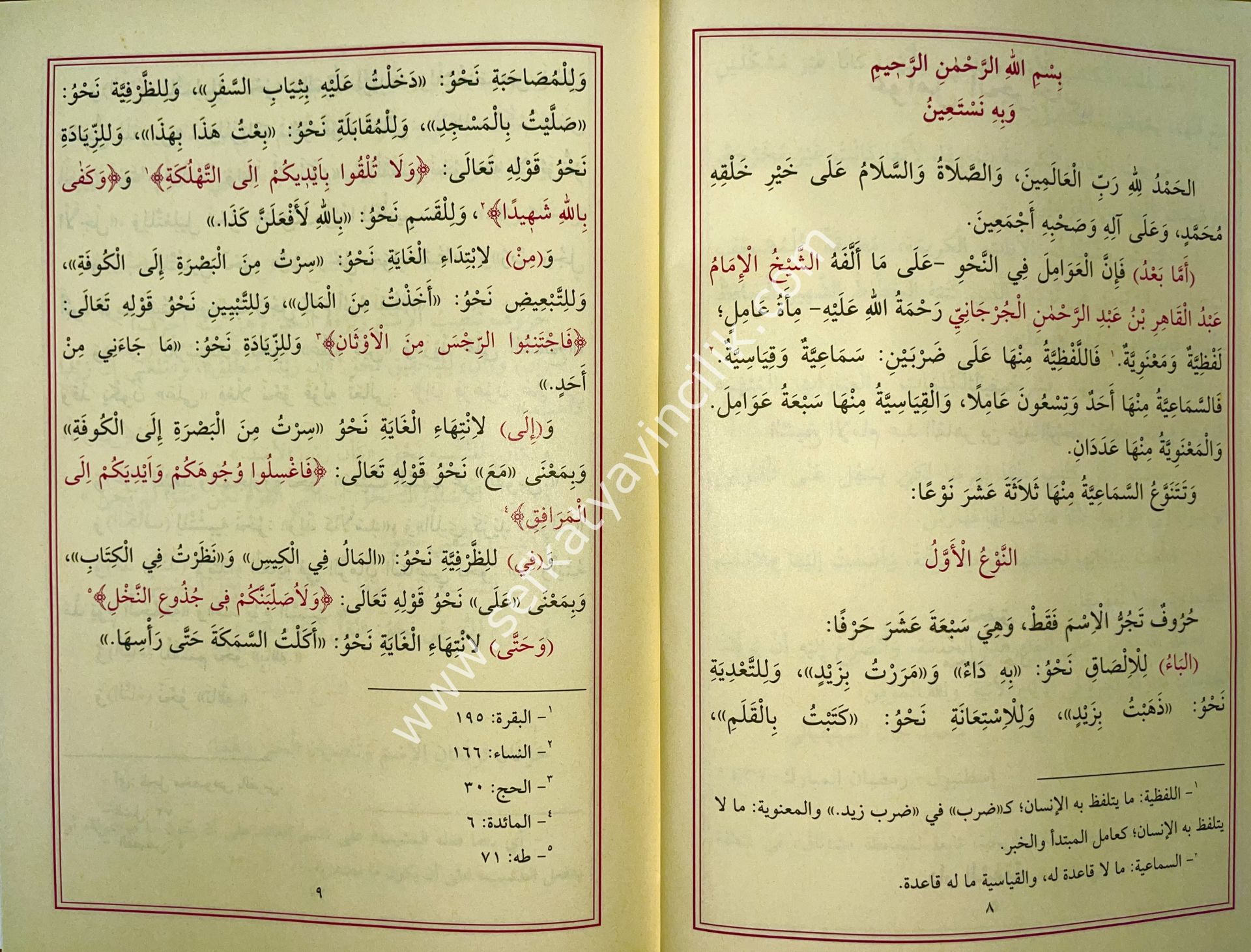 Medreselerde ders kitabı olarak okutulan ve ezberlenen: ِAvamil Cürcani, Avamil Birgivi, Zuruf, Terkib ve Sadullah Sağir isimli nahiv kitaplarını ihtiva eden bir mecmuadır...