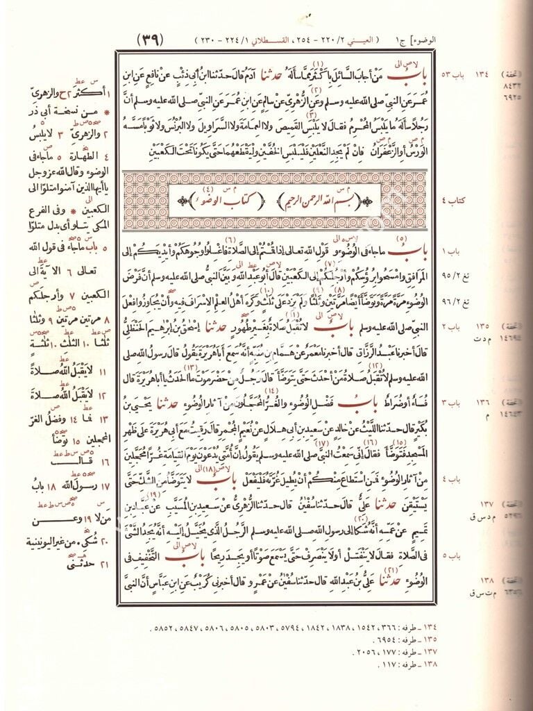 صحيح الإمام البخاري المسمَّى «الجامع المسند الصحيح المختصر من أمور رسول الله صلى الله عليه وسلم وسننه وأيامه» الطبعة الأميرية، السلطانية، اليونينية لقد أجمع أهل العلم في كلِّ عصر ومِصْر: أنَّ «صحيح البخاري» أصحّ كتاب تحت أديم السَّماء بعد كتابِ الله تعالى، فليس فوقه إلّاه، ودونه ما عداه. لذلك كان هذا الكتاب المبارك ممَّا توافر على قراءته وتدريسه أولو العلم قاطبة؛ إدراكاً منهم بعظم مكانته، وكثرة فوائده، ولِمَا له من أهميَّة كبرى؛ فهو في باب السُّنَّة، عظيم الجدوى؛ لاشتماله على جَمْع الأصحّ والصحيح، ولا سيَّما أن مؤلِّفه أمير المؤمنين في الحديث. وكان من البدهي أن يُعْنَى به المُحَدِّثون، ويقوم بضبط رواياته المحقِّقون، ويسهر على تحصيله المتخصِّصون المدقِّقون، وينبري لإيضاحه واستنباط أحكامه الفقهاء الرَّاسخون، فحَظِيَ بالعناية الفائقة من كلِّ جهة وناحية، وتعدَّدت طبعاته، وعمَّت نفحاته. ولما للطبعة الأميريَّة من مزيَّة؛ إذ هي أصحُّ الطَّبعات وأجلّها في هذه الأزمان، باتِّفاق أهل الحذق والإتقان.. رأينا إعادة طبعها، ولكن مع ضمِّ مزايا أُخرى إليها؛ ليجتمع في هذه الطَّبعة من الفوائد المنتقاة، والجواهر المتصيَّدة ما لا يوجد في غيرها من الطَّبعات الأُخرى. أضف إلى ذلك: أنَّ هذه الطَّبعة اعتمدت على أصل عظيم تواطأ المُحَدِّثُون على دقَّته وضبطه، وهو نسخة الحافظ اليُونيني رحمه الله، إضافة إلى مزايا جمَّة، تتلألأ بها صفحات هذا الجامع المبارك، ومنها: - تلك المقدمة الضافية، التي ترسل أشعة البيان على الجامع، ومُصَنِّفه، ورُوَاتِه، وغير ذلك. - وتلك الجهود المتعلِّقة بذكر مواطن الحديث في أشهر شروحه، وبيان أطرافه مقترنة بأرقامها، والإشارة إلى من أخرجه من أصحاب الكتب السِّتَّة المعتمدة. وليس من المبالغة إذا قلنا: إن هذه الطَّبعة هي واسطةُ العقد بين الطَّبعات؛ لاشتمالها على فوائد مهمَّات، وإشارات جليَّات، مع أناقة الطَّبع، وجودة الإخراج. والله وليّ التوفيق